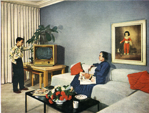 Everyone in this room is unhappy. The little boy is unhappy, the old woman is unhappy, even the kid in the painting looks miserable. They've probably had to tour the rest of the rooms shown in the book. That would make me miserable, too.
