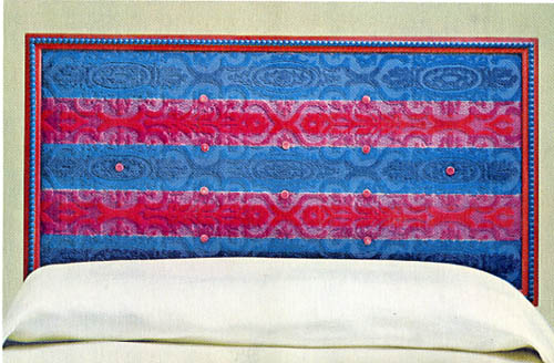 Towel #1: framed in painted molding and mounted as a headboard. A nice, soft, absorbent headboard. A headboard that is obviously a damn beach towel.