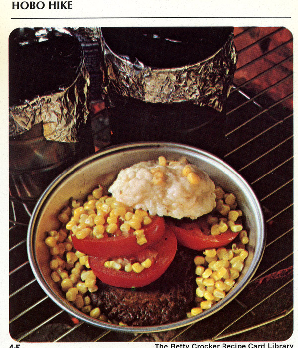 This party idea involves (I'm not making this up) throwing some cold food into a coffee can, then sending the kids on a hike out into the woods where they can light a fire and cook the food in the cans themselves. It doesn't really specify whether you're supposed to have adult supervision or not, and of course the ideal highlight of the party would be when little Timmy gets into the Mad Dog, drinks 'til he's blind, eats Hobo Bob's chewed-upon cigar-end, and falls under an oncoming freight train.
